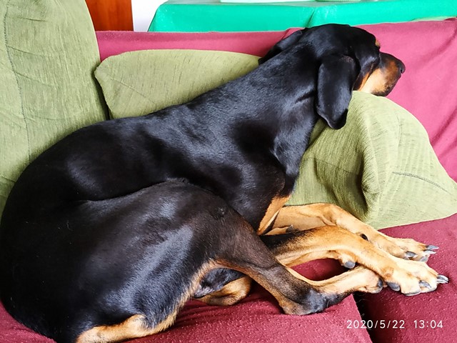 Hier entspannt wirklich alles. Flash auf der Kautsch mit seinem Koepfchen auf dem