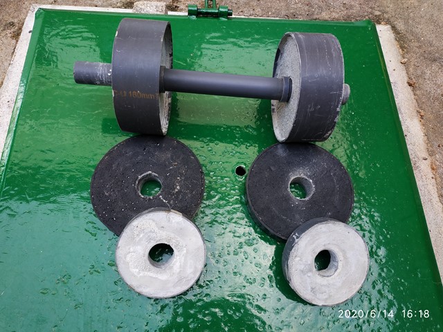 Meine selbstegebaute Hantel, die fuer etwas mehr Fitness sorgen soll.