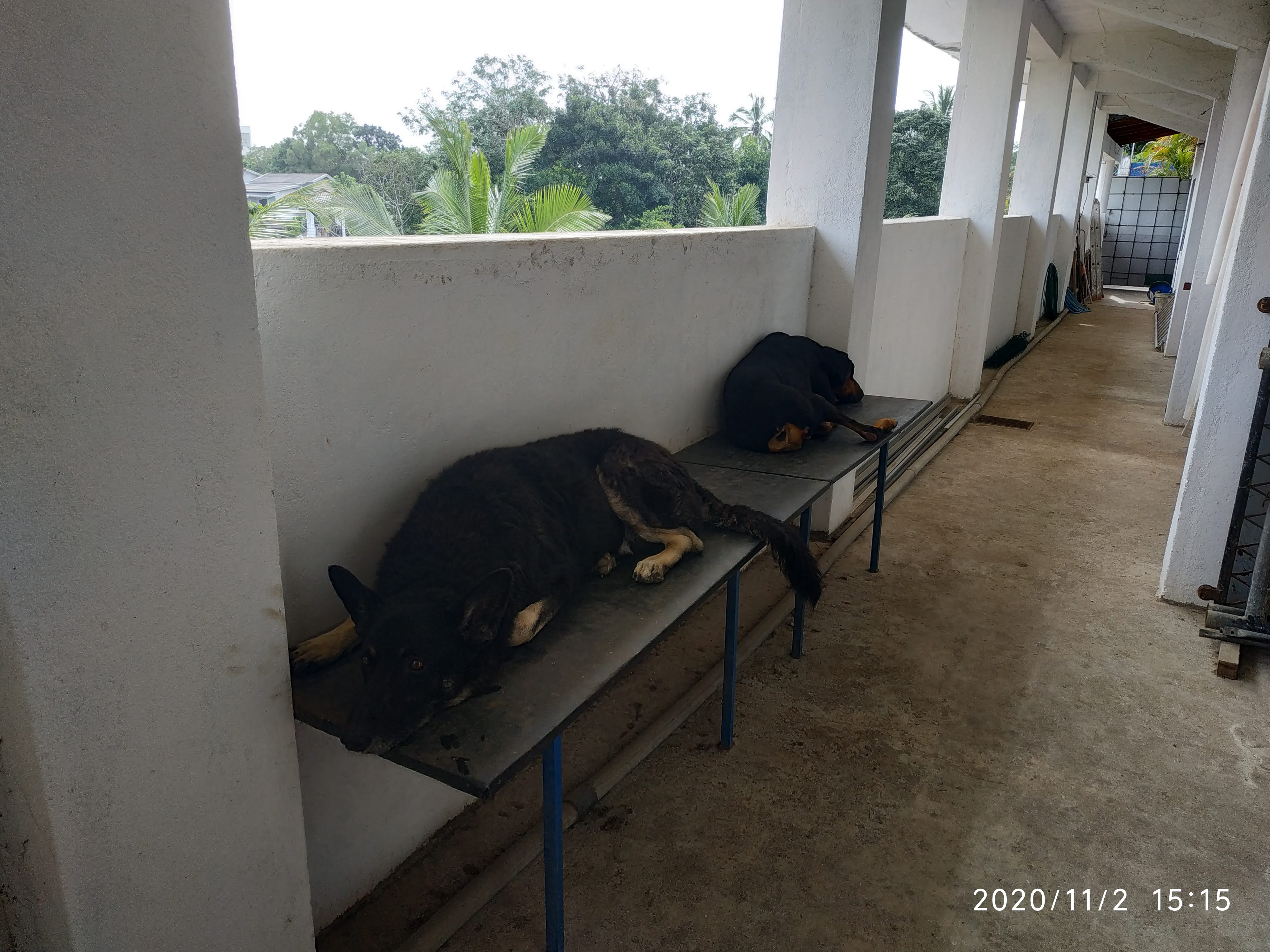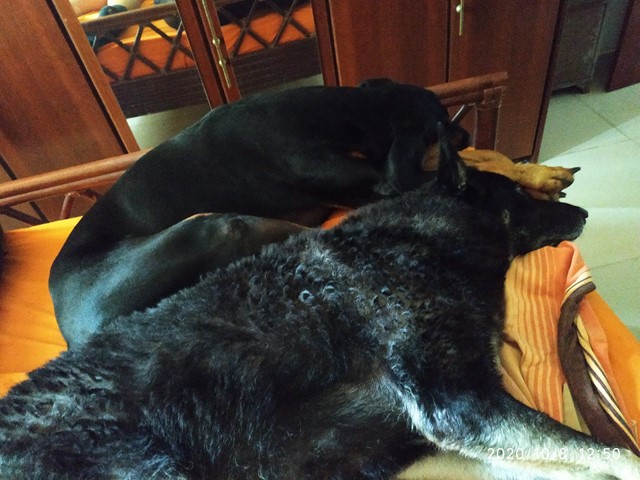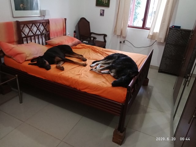Die ach so friedlichen Hundis, die immer laenger im Bett verweilen als wir, haben unsere