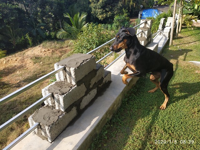 Das erste selbstgebastelte Gelaender wegen der Hunde. Aber vorsicht blos nicht aus