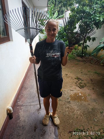 Jacky erfreut sich an ihrem ersehnten Rechen.....