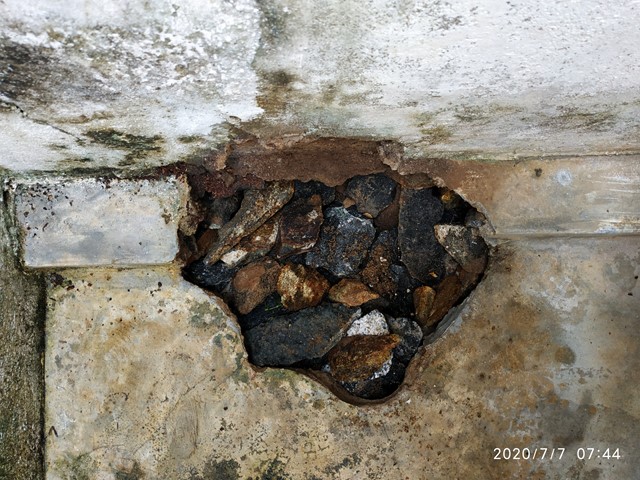 Leider frustig, da die damaligen Arbeiter zu wenig Zement in die Mischung geben...