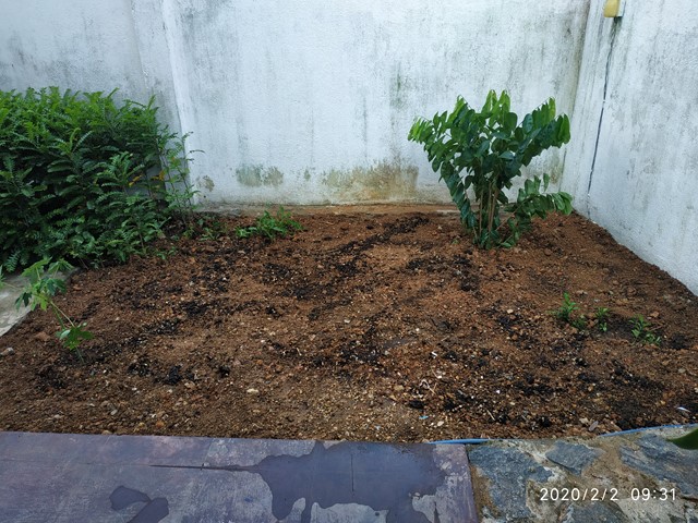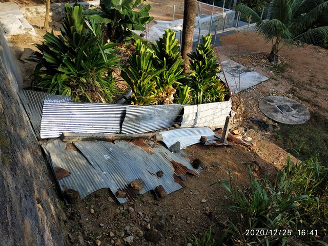 Und hier die andere Ecke wo Hecken, Stachelanonenbaeume und Papaya gepflanzt wurden.