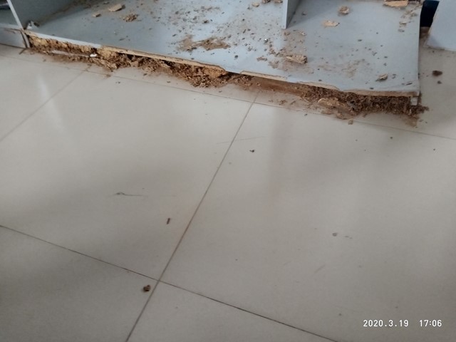 Die Termiten haben wieder zugeschlagen, jetzt reichts und der Schrank kommt weg.