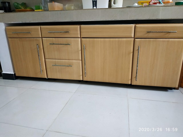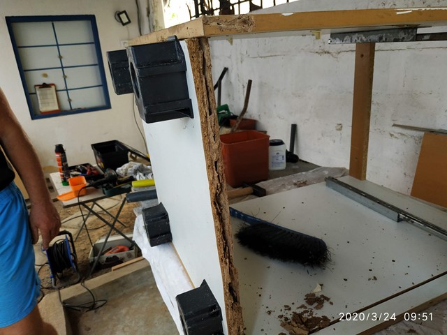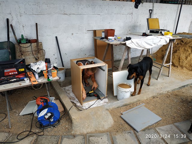 Die Kuechenschraenke waren auch noch befallen, also alles kaputte ersetzt.