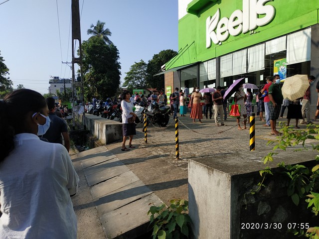 Lange Schlangen vor den Geschaeften ausserhalb der Sperrzeit. 2 Stunden warten ...