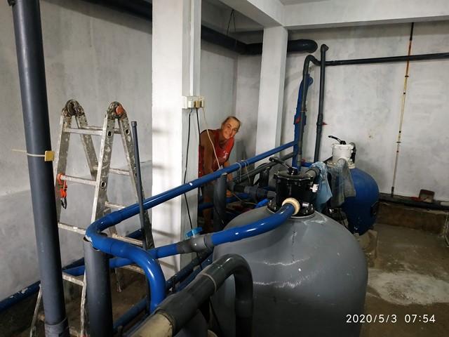 Nun ist auch die Treppe vor dem Filterraum modernisiert worden.