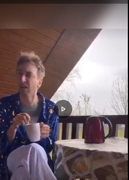 Trocknen laufen. Bekommt auch keinen Matsch an die Fuesse.