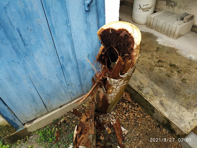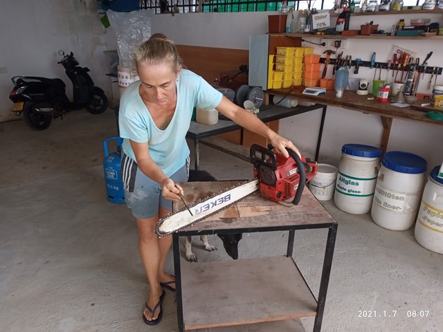 haben uns eine Saege ausgeborgt, die war voellig stumpf. Wir haben