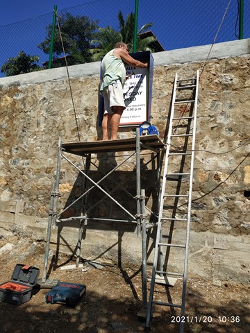 Das alte Board bekam am neuen Eingang einen neuen Platz. Sogar mit Regenschutz. |