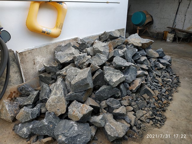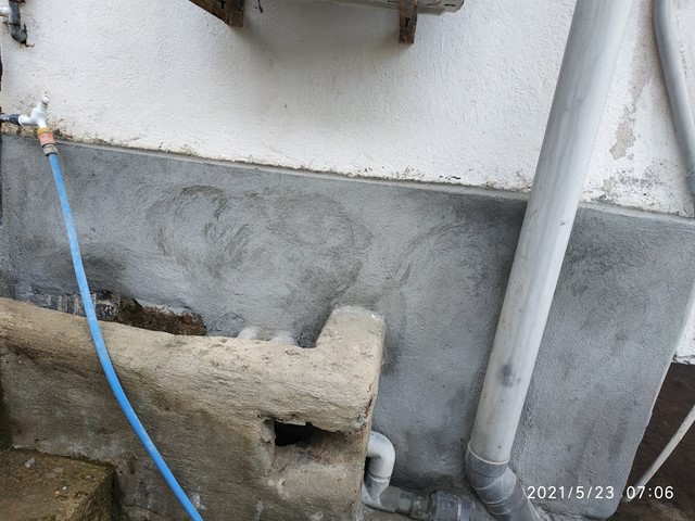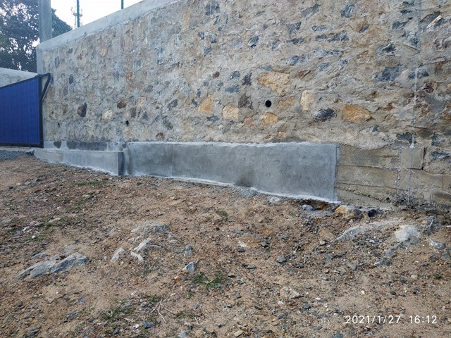 Der untere Teil der Mauer wird auch verputzt. Da kommt aber noch eine Strasse hin. Dann |