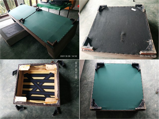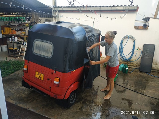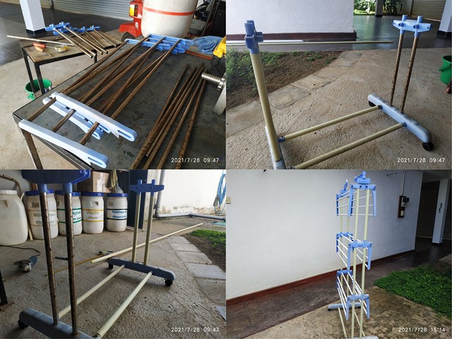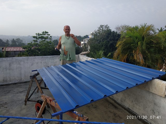 wird nass oder die Sonne scheint aufs Gehirn. Das Gestell wurde in der Werkstatt gefertigt. |
