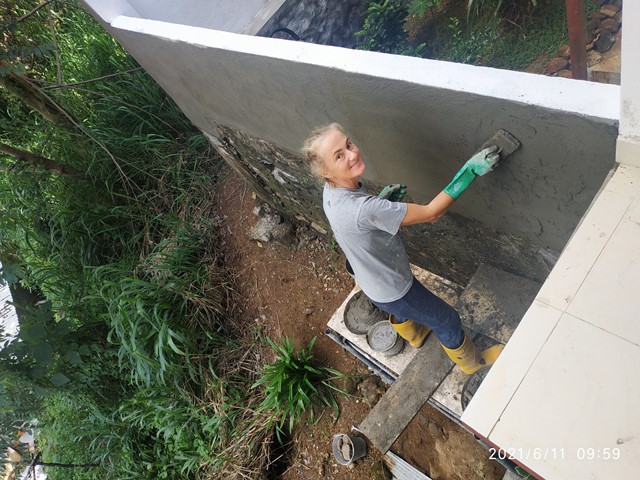 Jacky verputzt die Mauer in schwindelnder Hoehe ---- Video 04 |