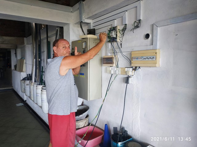 .... ist er auch schon bei der Reparatur des Badezimmer Lichts. Ein Schindermann!Chapeau!
