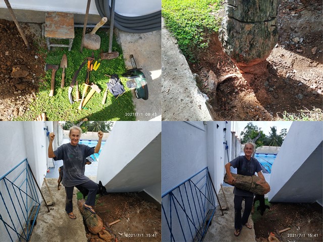Hier soll eine Treppe entstehen, was die Wurzel versucht zu verhindern. Video 19