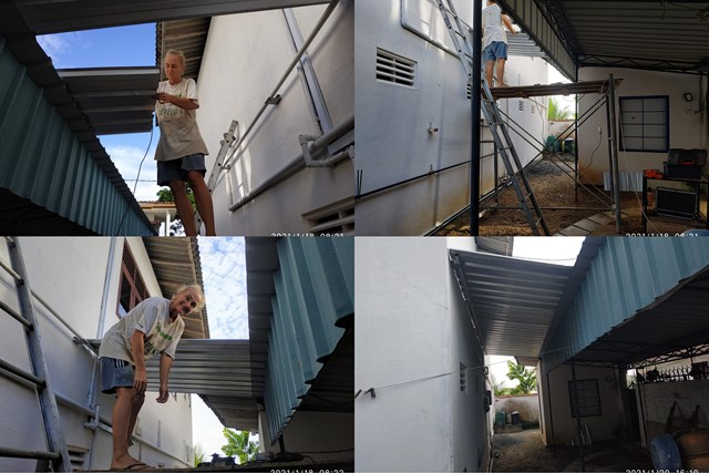 Endlich der Regenschutz. Ueberfallig. So kommt man jetzt trocknen Fusses zum Pool. |
