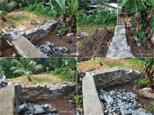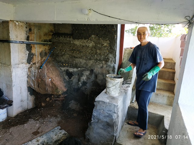 Die Fusskanten an den Mauern auch wieder viel Sand drin. So haben wir sie neu gemacht.