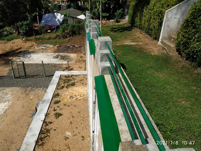 Erste Vorbereitungen fuer das Gelaender auf der neuen Mauer.