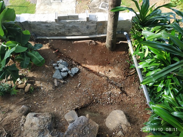 Beim Buddeln wurde ein Rohr gekappt. Wurde aber von mir wieder repariert.