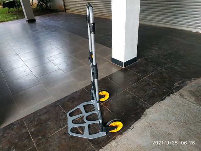 Nach 25 Jahren musste nun eine Sackkarre her. Wir wollten eigentlich eine ohne Klappen.