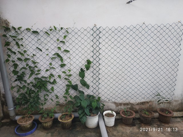Ueberall stehen Toepfe, um Pflanzen zu ziehen.