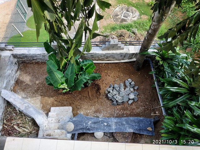 Noch etwas Erde auflockern und Platz schaffen fuer die Treppe.