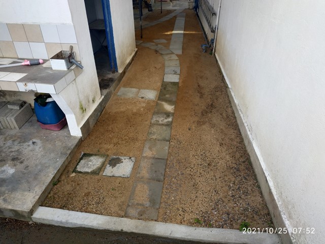Nach der Ueberdachung kamen nun die Gehplatten. So kann man jetzt in Ruhe im