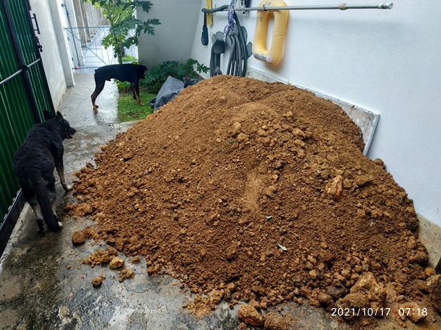 Das ist die Erde von einem Lorry. Diese brauchen wir, um die Beete aufzufuellen. Video 21