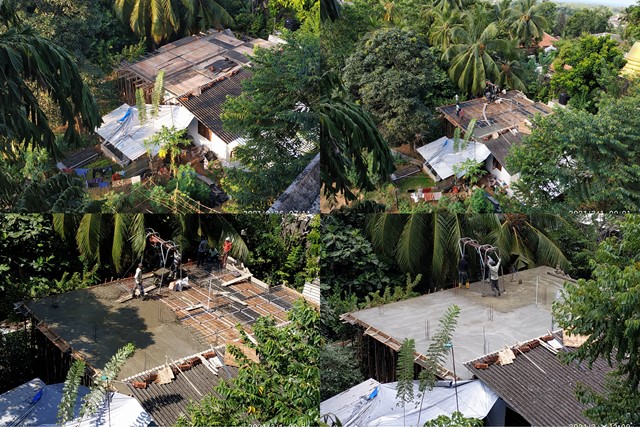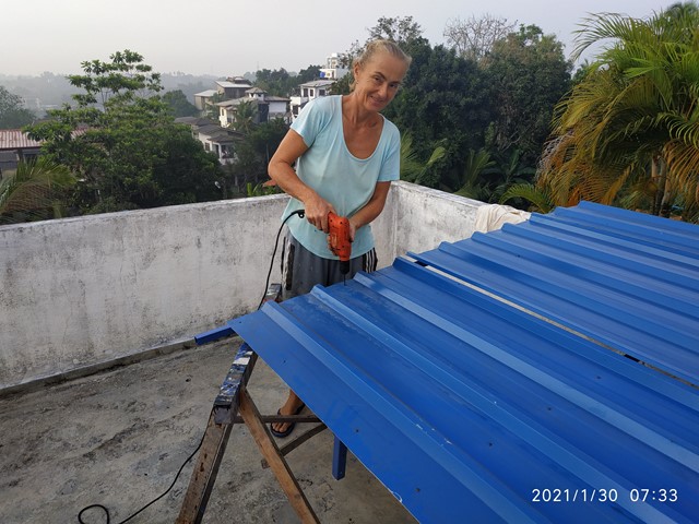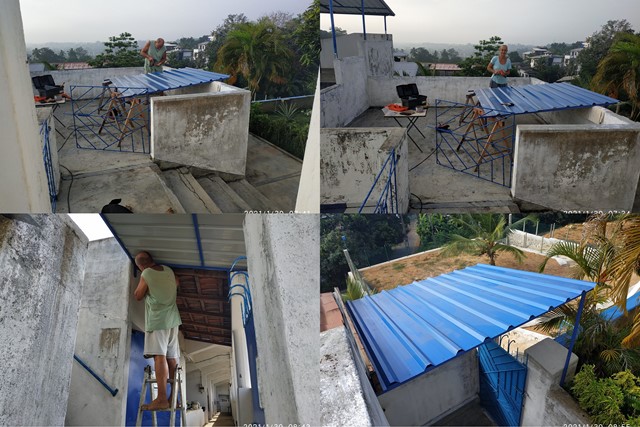 Nun das komplette Dach abgebaut,die Mauern erhoeht und Dach wieder drauf.