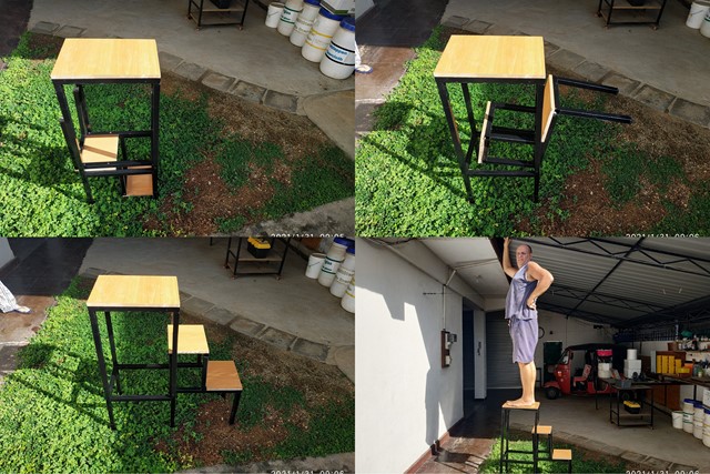 Das war schon lange eine Herausforderung fuer mich. Ein Klapphocker mit 90cm Hoehe. |