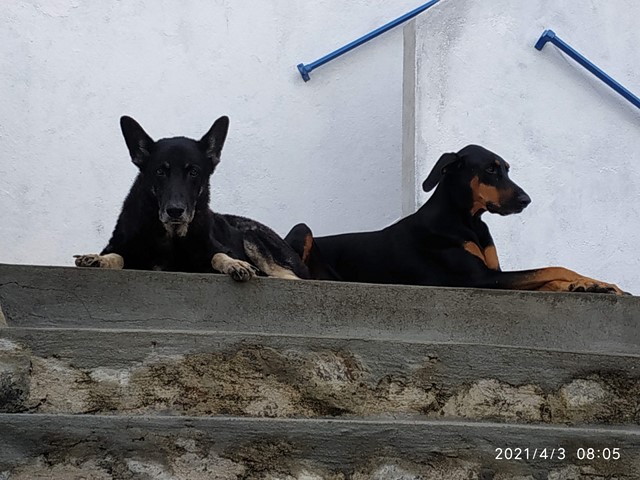 Die Hunde sind immer dabei und passen auf das uns nichts passiert. Sie stehen bei uns |