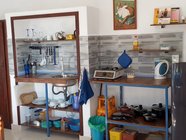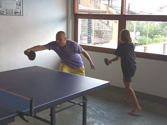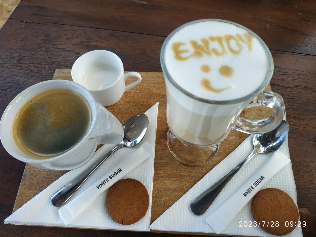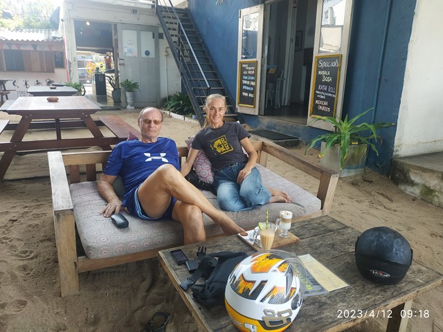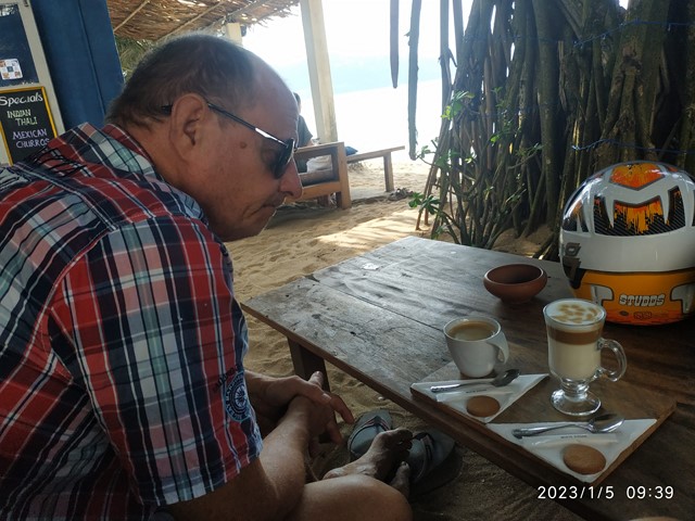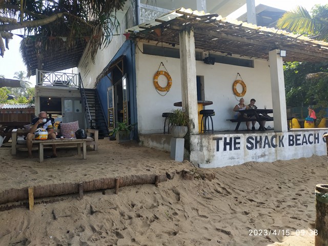 Nun das Gegenteil im Shack. Gemuetlich sitzen, am Strand und einen Kaffee und ...