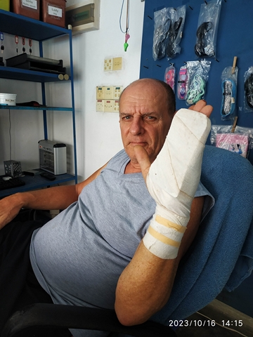Flash ist vom Umlauf gefallen.Zog sich Prellungen und Schuerfwunden zu. Jacky pflegt.