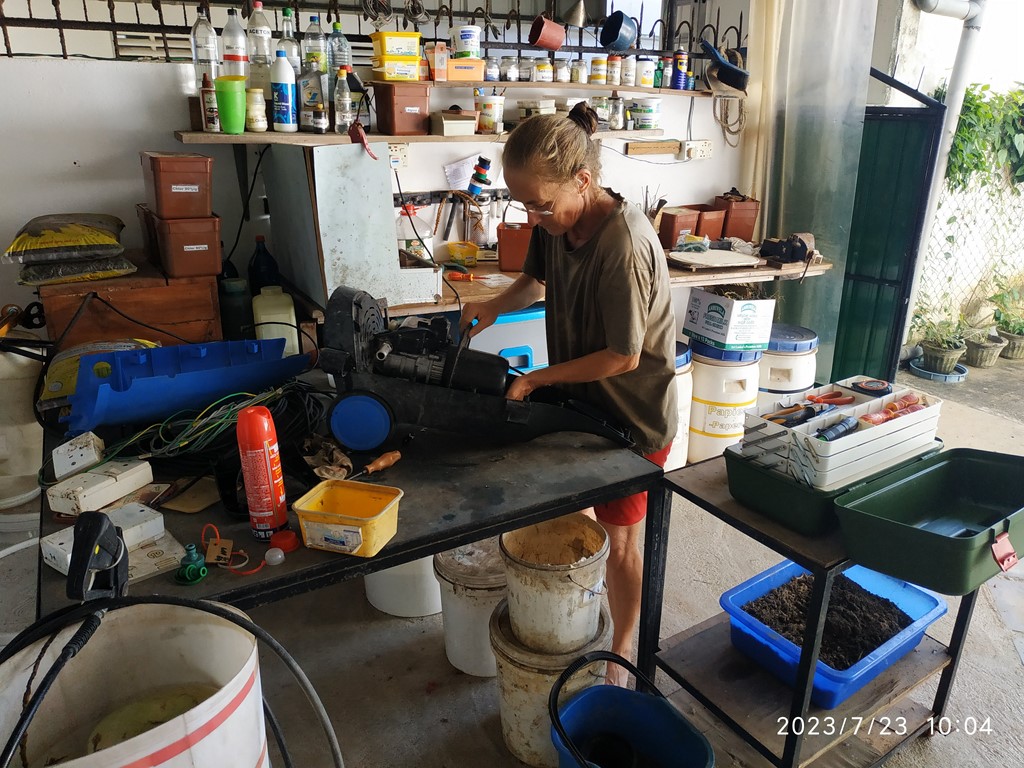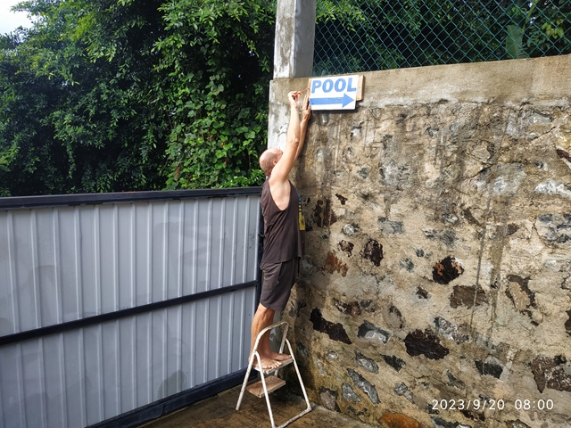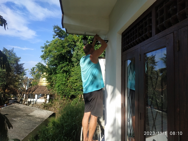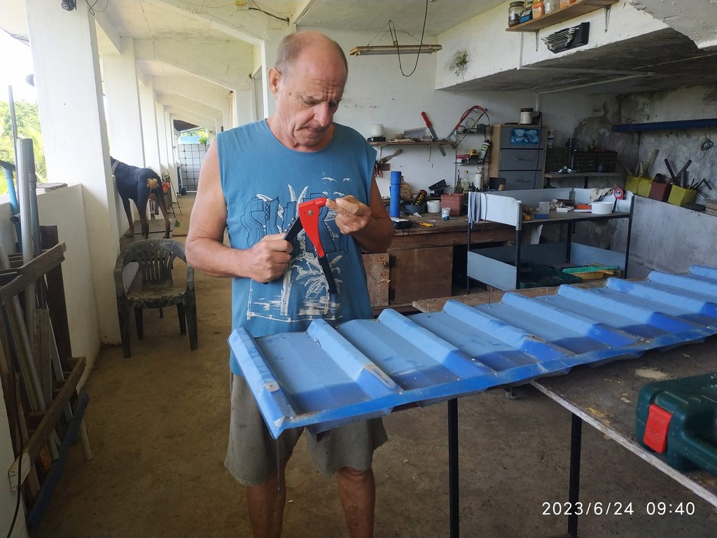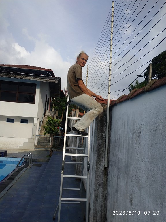Jacky spannt die Kabel neu, Stange war durchgerostet und wurde eneuert.