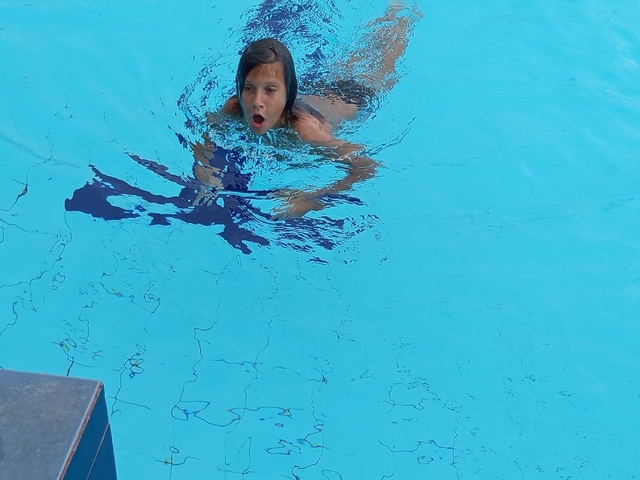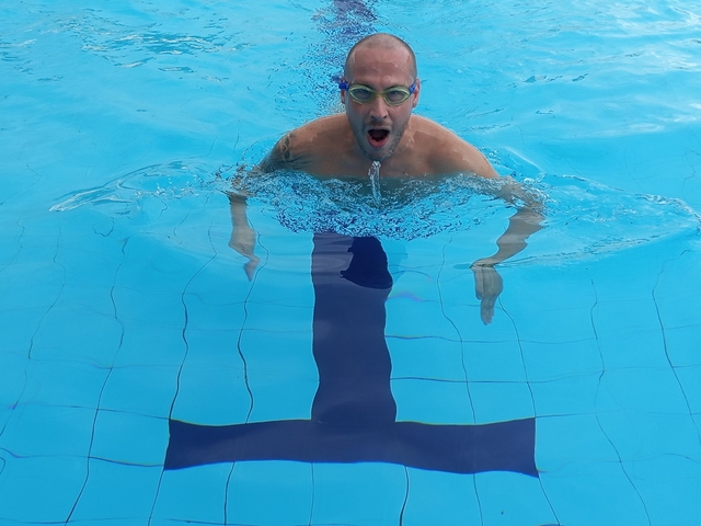 Auch Vova gewoehnt sich einen anderen Schwimmstil an.