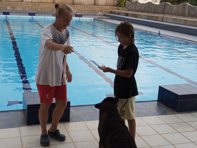 Egor, der sich pudelwohl in unserem Pool fuehlt.
