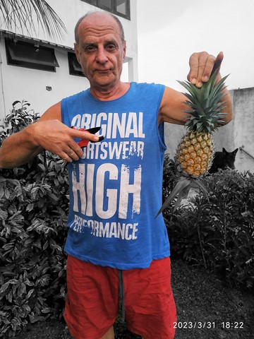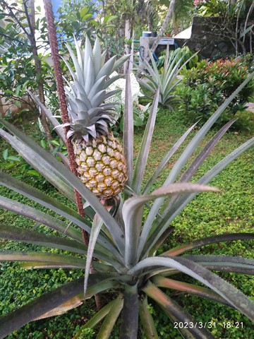 Wieder mal eine Ananas geerntet. Leider wird sie schneller gegessen als sie waechst.