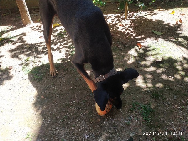 Abendliches Spiel mit aufgergtem Rex und dem Ball. Rex gewinnt meistens. Video 04