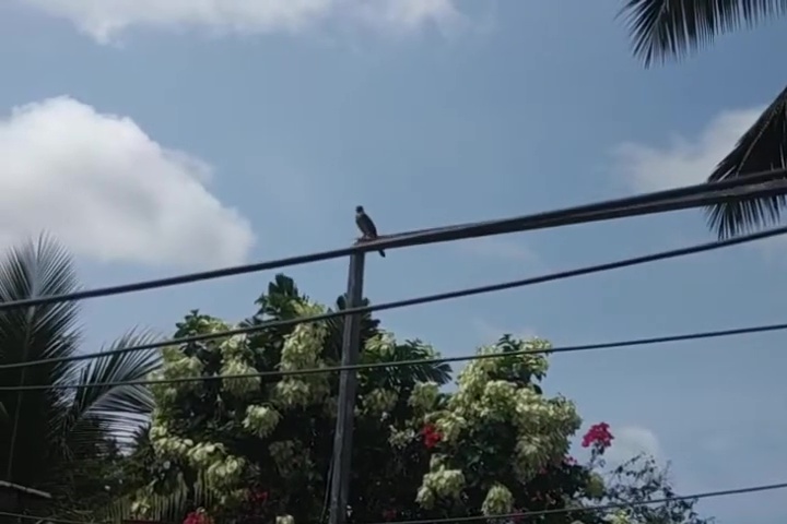 Hier unser Hausfalke, der schon auf sein Fruehstueck wartet. siehe Video 17