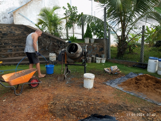 Den Sand haben wir Tonnenweise mit dem Tuc Tuc runtergefahren, dort ausgekippt ...