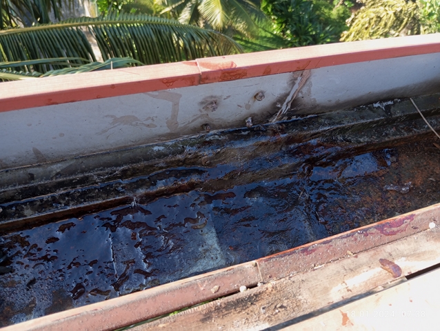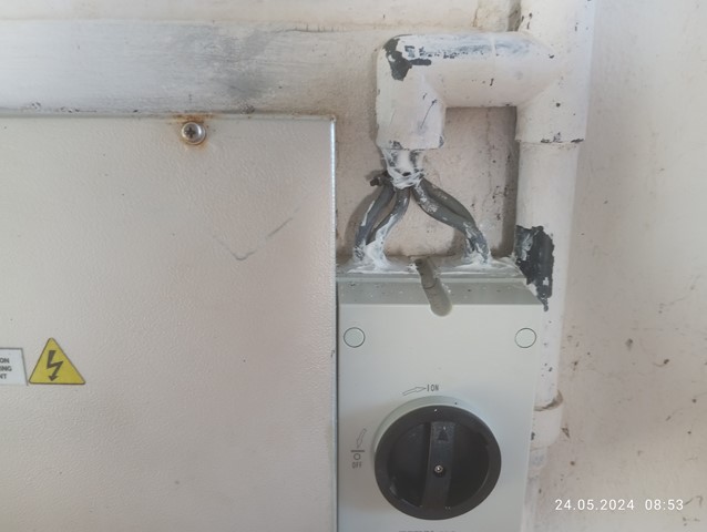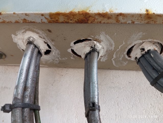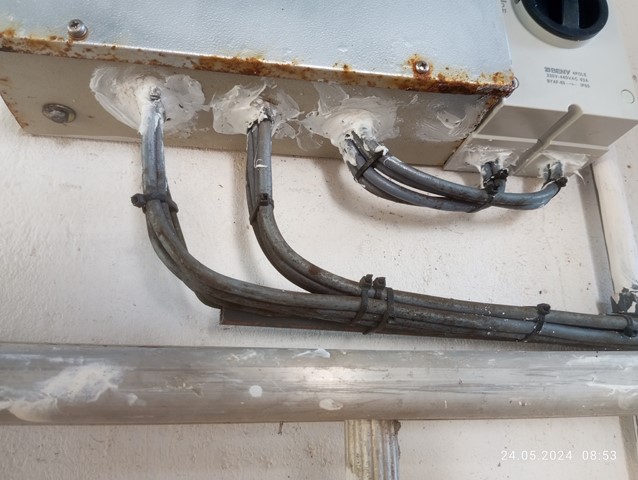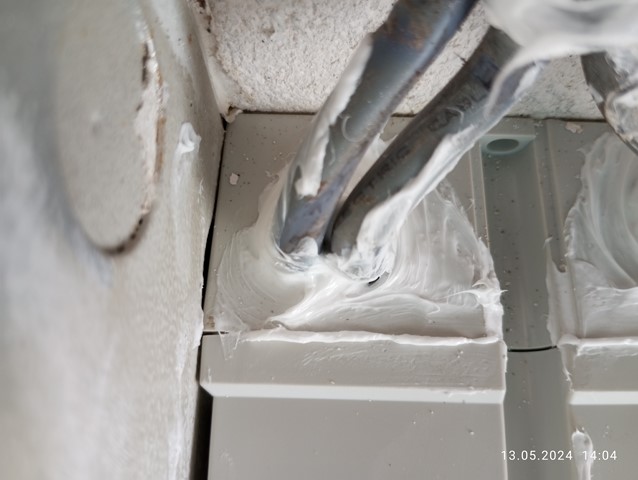 Hier nochmals eine Stelle, die wir abgedichtet haben. Das offene Rohr...