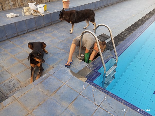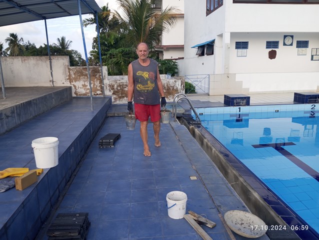 | Dazu musste erstmal das Becken trocken gelegt werden, und die Mauern eingerissen,... | ...damit wir die Tanks ueberhaupt hinein bekommen. Video 33 |