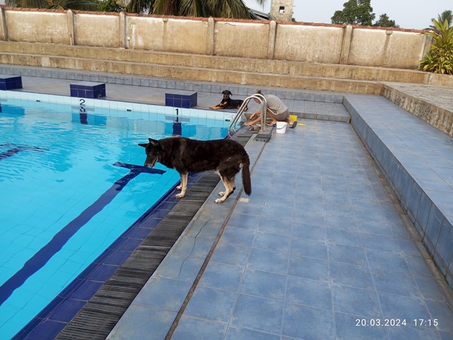 Das ist nicht unser Pool, wie auch zu sehen ist. Das Ding gehoert zum Aloysius College.
