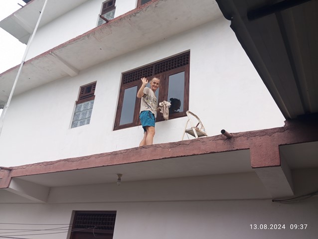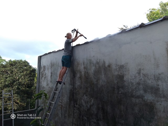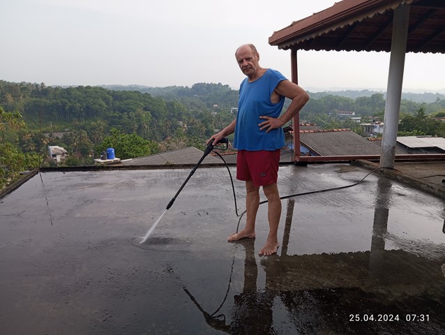 Grosse Aktion steht an. Das Haus muss gekaerchert werden, zum Teil rutschige Flaechen...