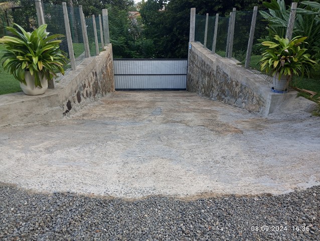 zu unserem Tor zementiert. Wir hatten schon mal ein Stueck gemacht,
