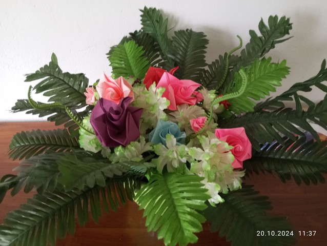 | Selbstgebastelter Blumenstraus. | Rex nutzt nun die volle Flaeche im Bett. |