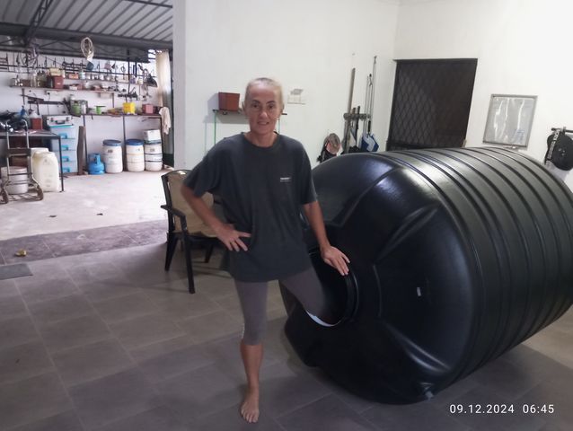 | Mal wieder ein neuer Abschnitt im System. Da wir mit dem selbstgemauerten Tank 2 doch.. | ne Menge Wasser verlieren, haben wir uns entschlossen, richtige Tanks dort hinzustellen. |
