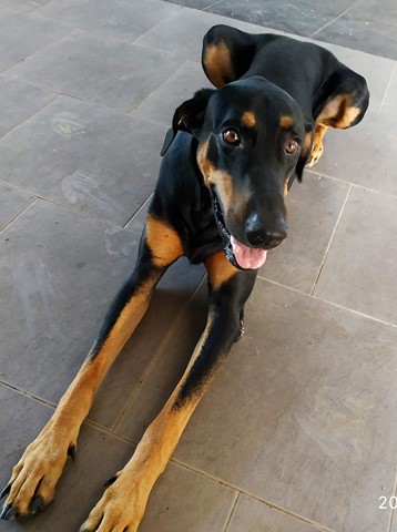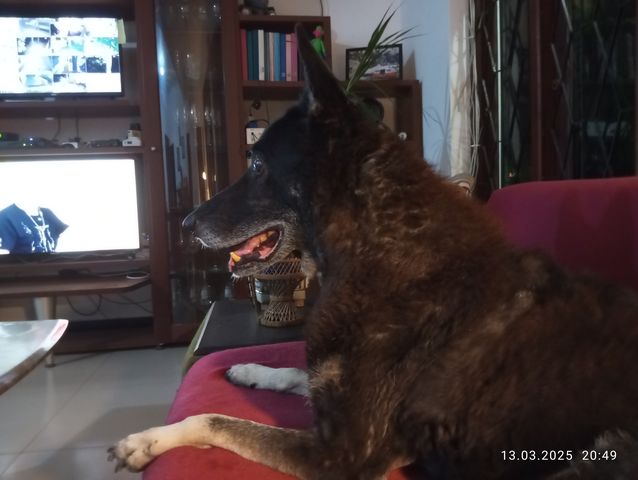 Rex hoert und sieht was ich in der Kueche mache. Er koennte ja etwas verpassen. |