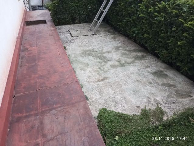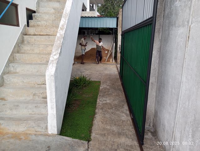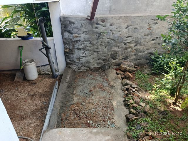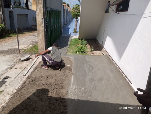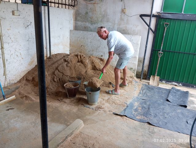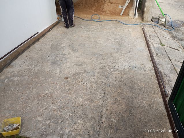 | Endlich wird die Einfahrt gemacht, nachdem das Rolltor modernisiert wurde. | Das komplette Stueck soll zementiert werden. |