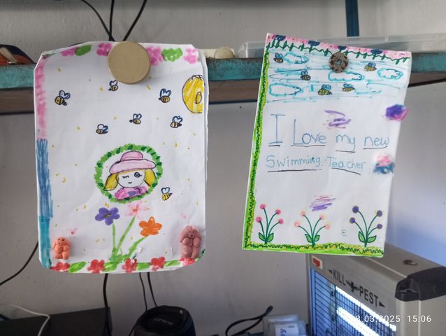 Geschenke von 2 Kindern, die hier Schwimmen lernen. |
